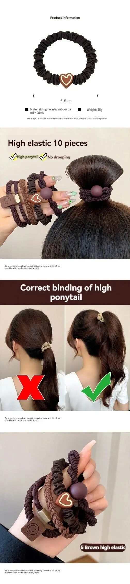 10PCS Headband Leather Band Female High Ponytail Holster Hair Accessories Simple High Elasticity Durable Rubber Band Hair Circle