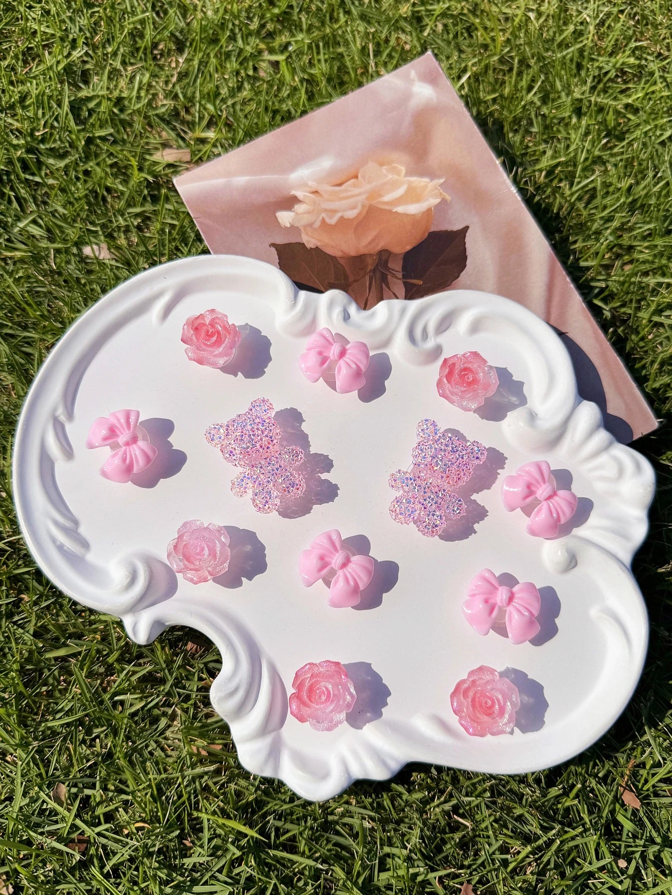 12 pieces of pink glitter bear, gradient rose, bow shoe buckle DIY decoration, sandals, slippers, beach bag multi-functional sho