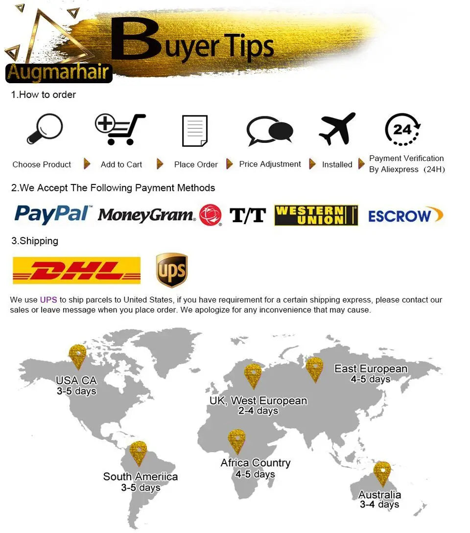 Human Hair Wigs Delivery Time: DHL Fedex 3-5 Days Fast Shipping