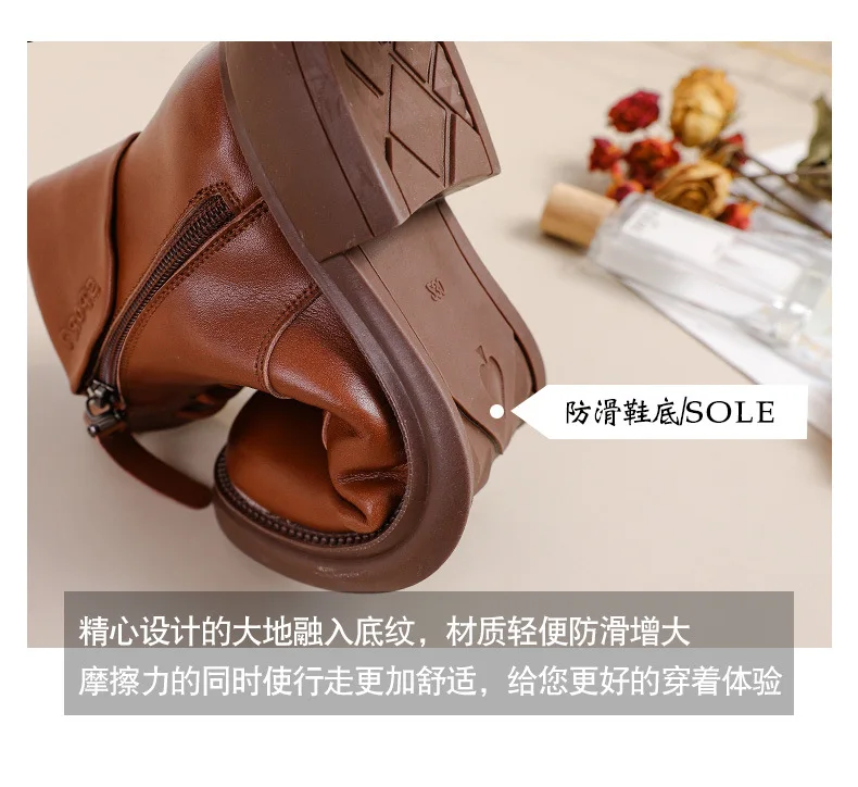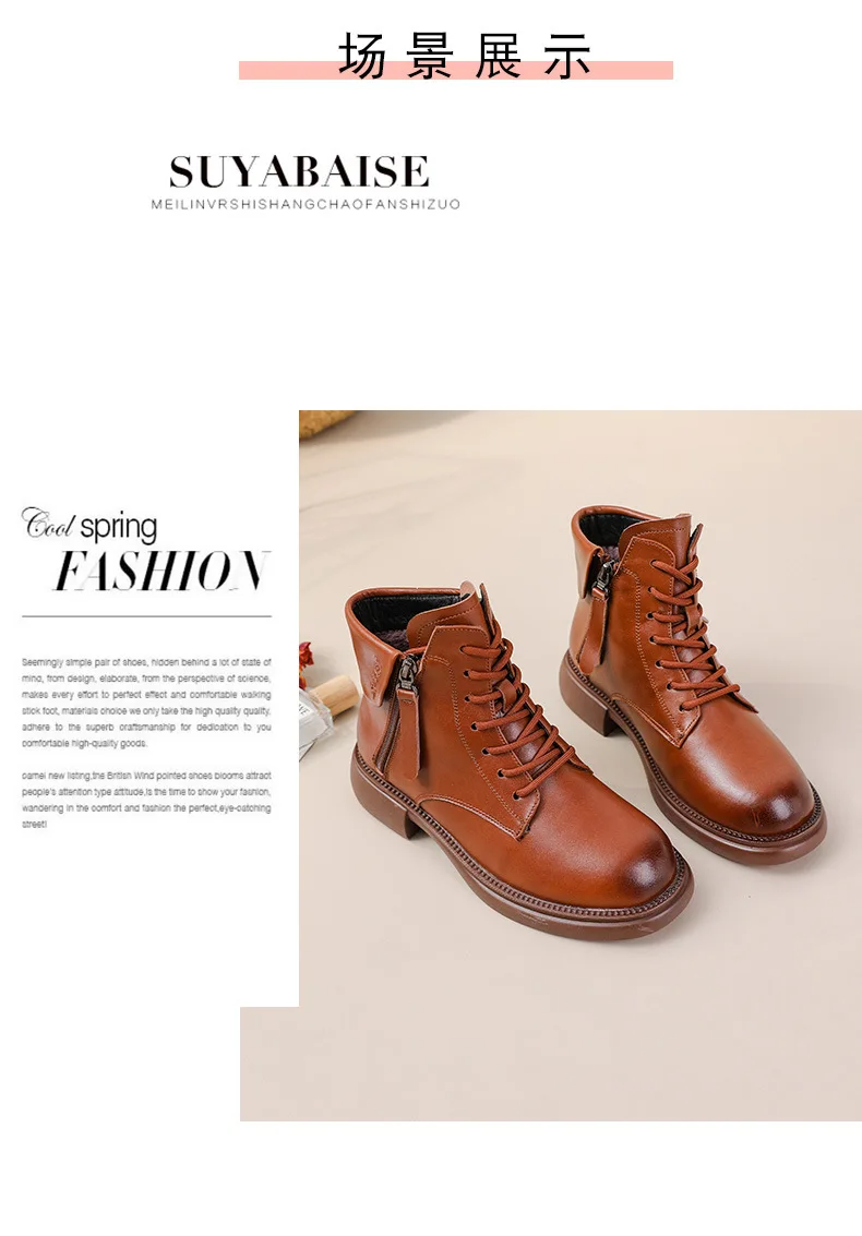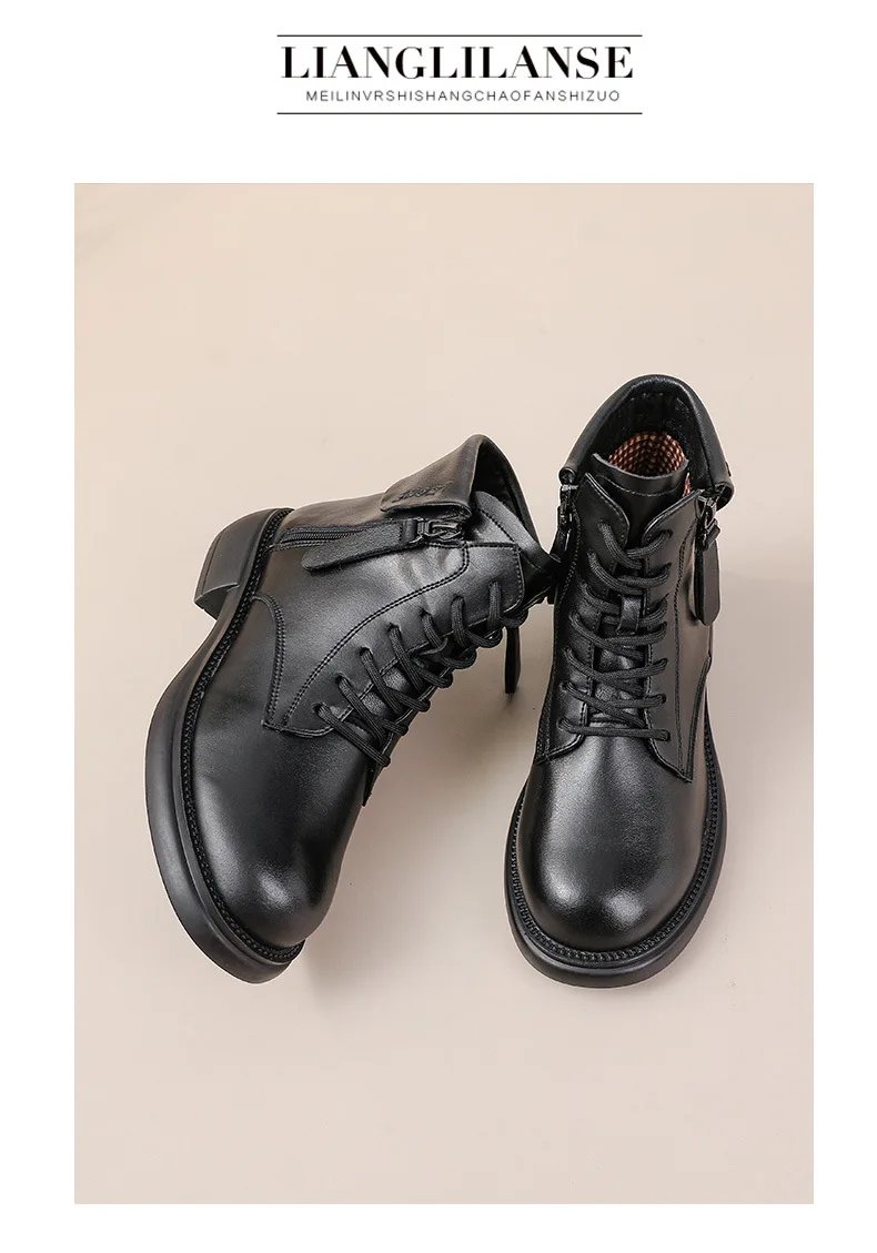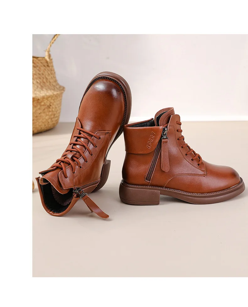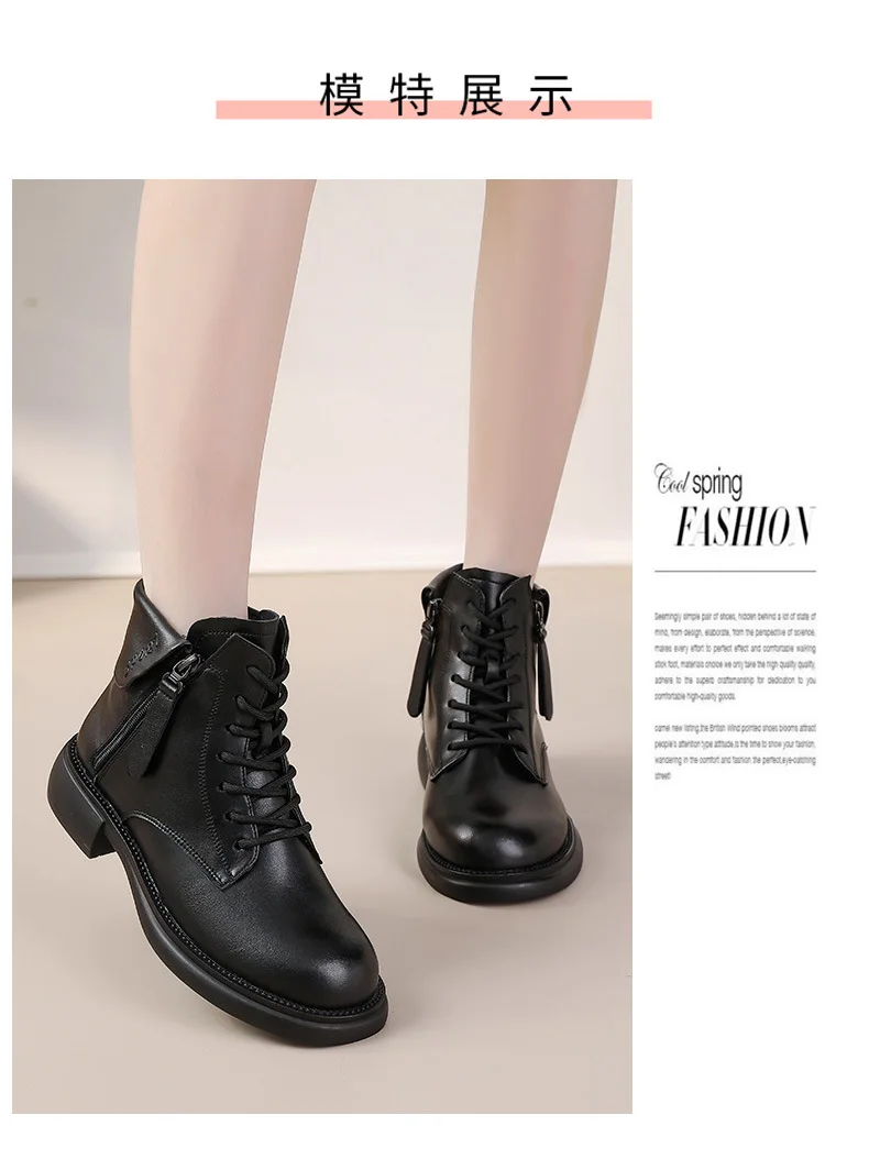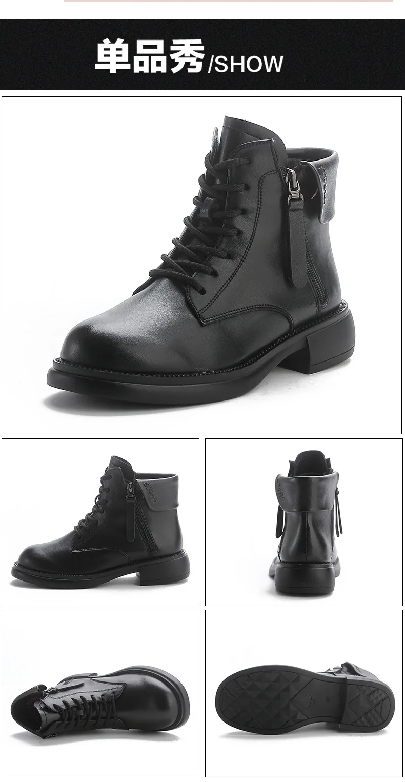 2024 Autumn New Low Heel Bull Muscle Sole Ankle Boots Korean Edition Casual Genuine Leather Women's Boots Warm and Comfortable