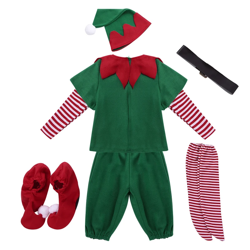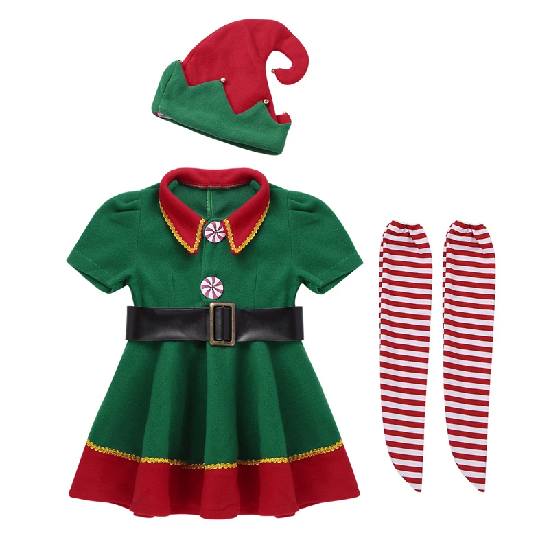 2025 Green Elf Girls christmas Costume Festival Santa Clause for Girls New Year chilren clothing Fancy Dress Xmas Party Dress