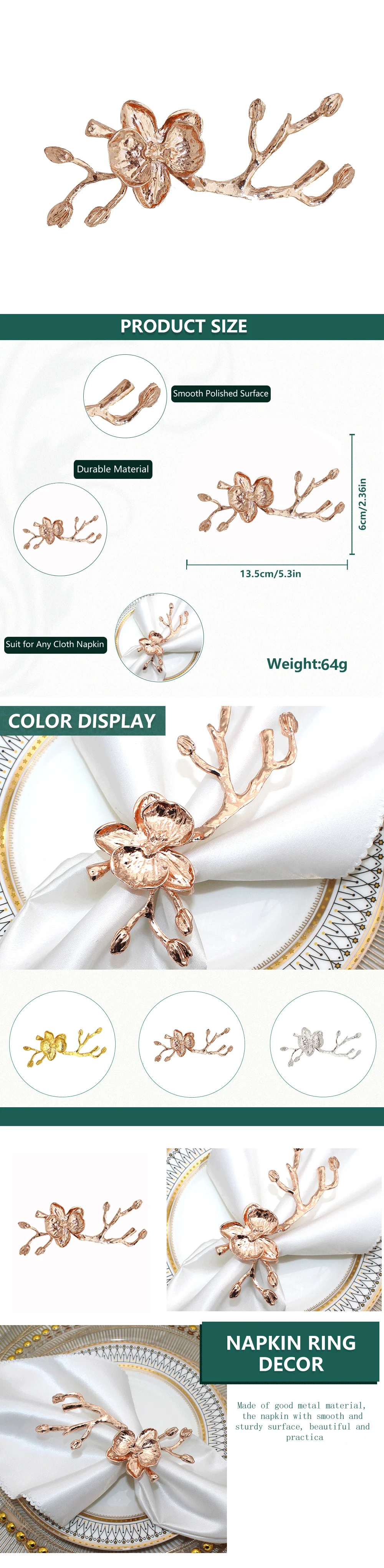 6Pcs Rose Gold Flower Napkin Rings Metal Plum Blossom Napkin Holder Christmas Napkin Buckles for Party Wedding Dining Decor