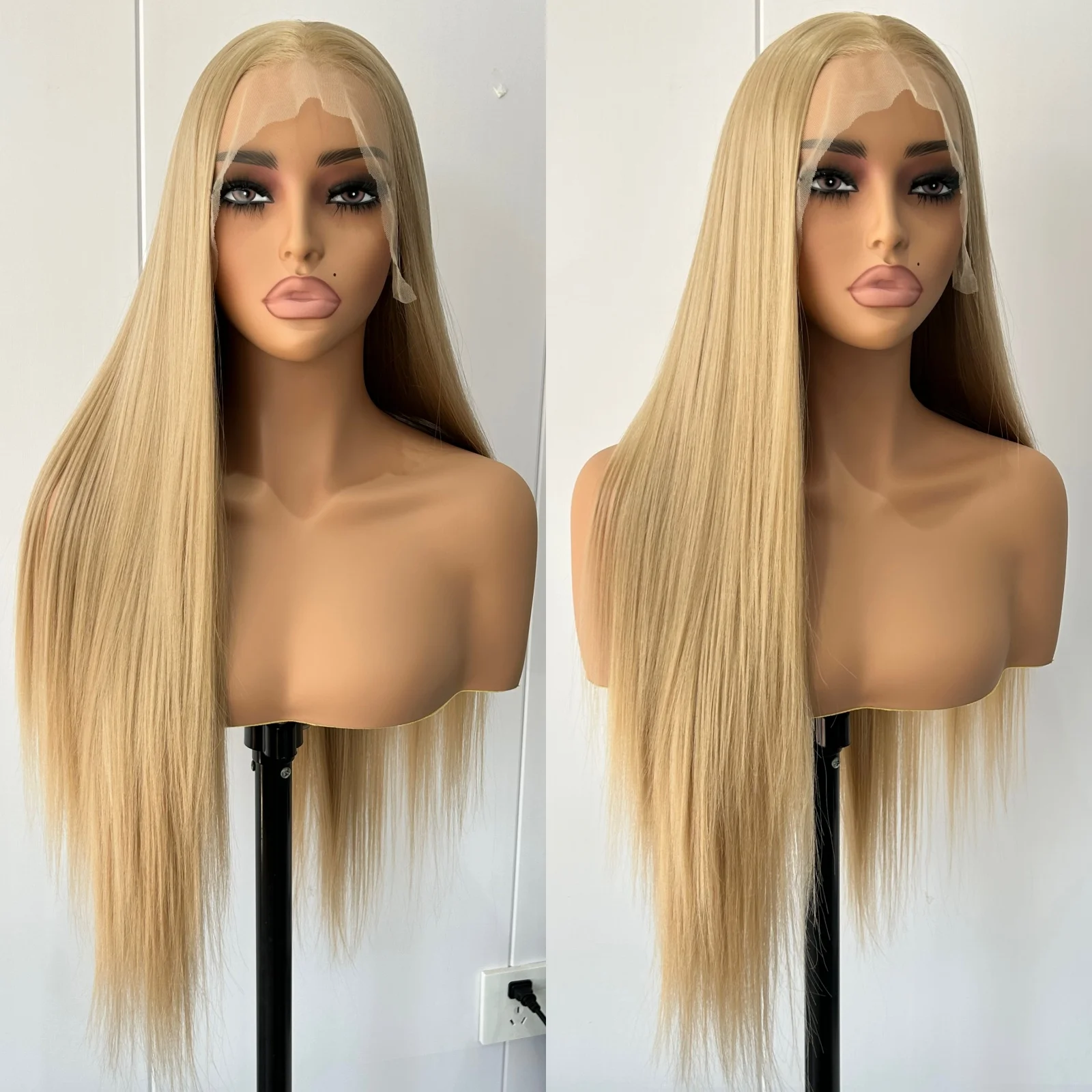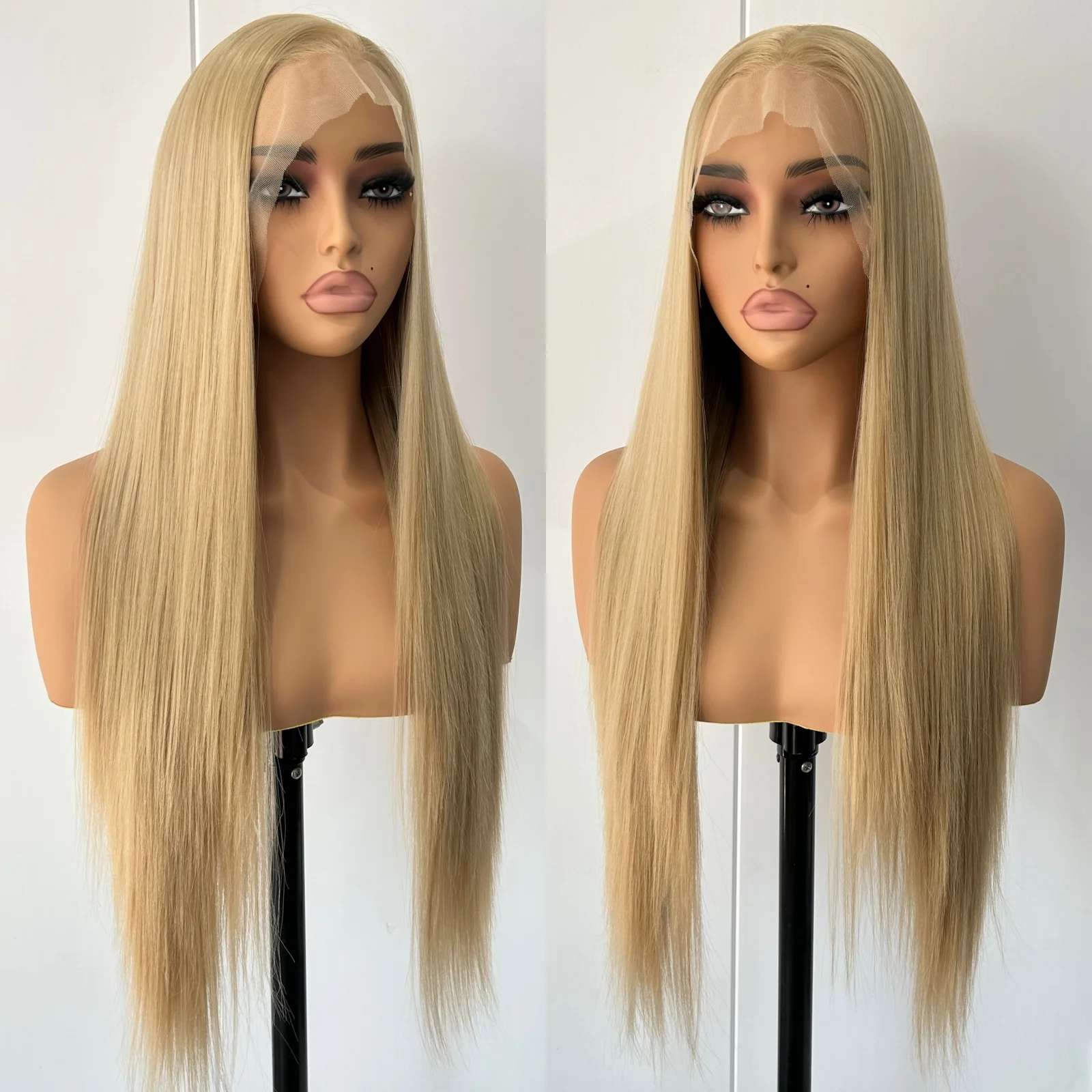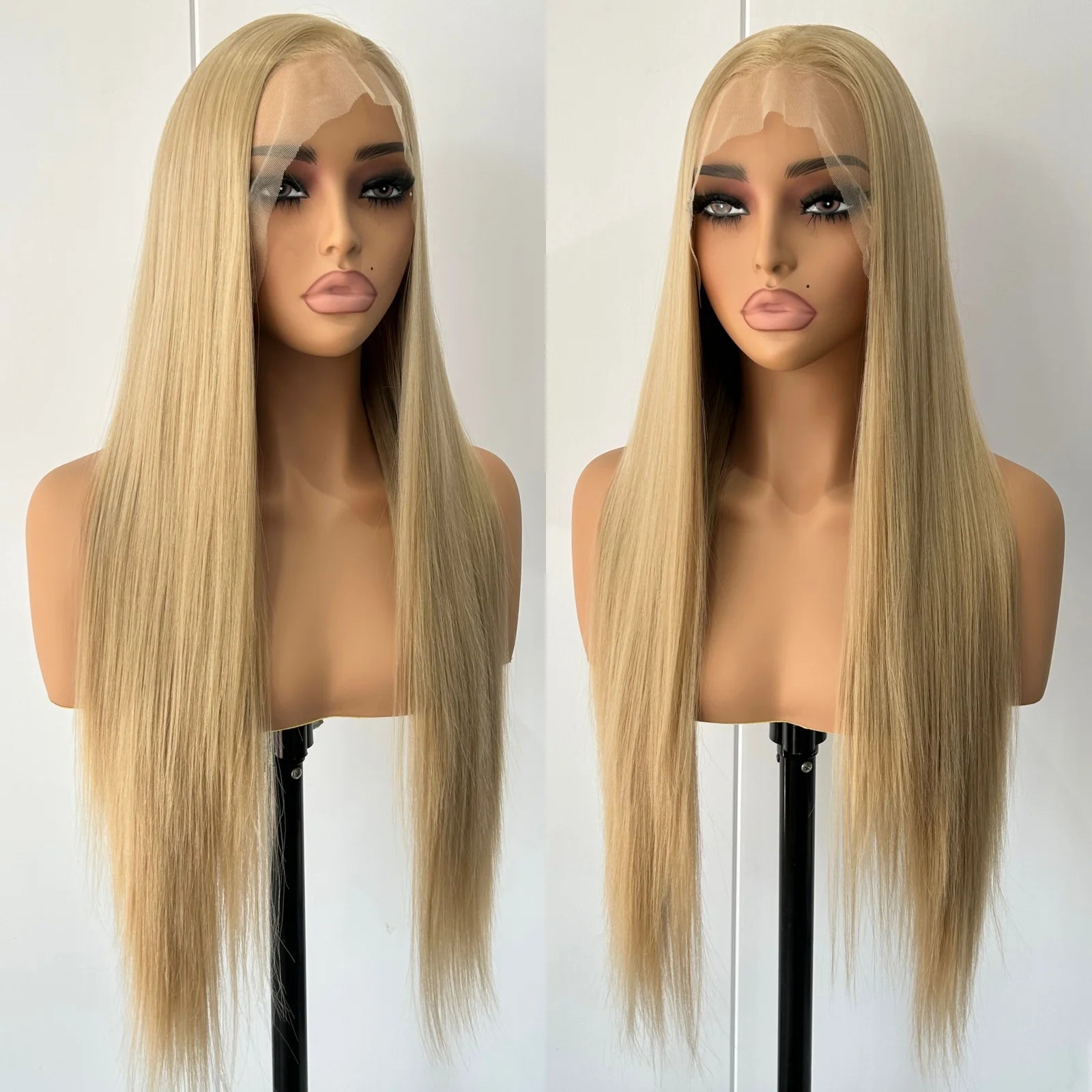 Ash Blonde Long Silky Straight Synthetic Lace Front Wig Free Part Dirty Blonde Colored Heat Resistant Fiber Wigs for Women Daily