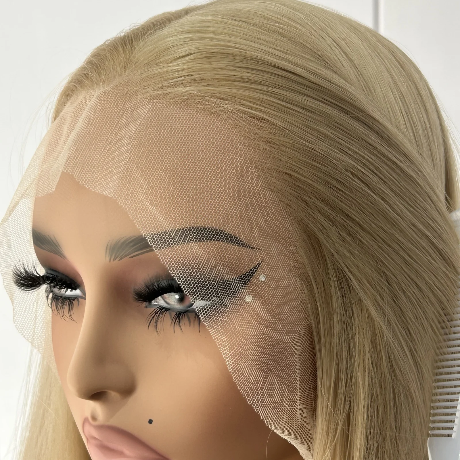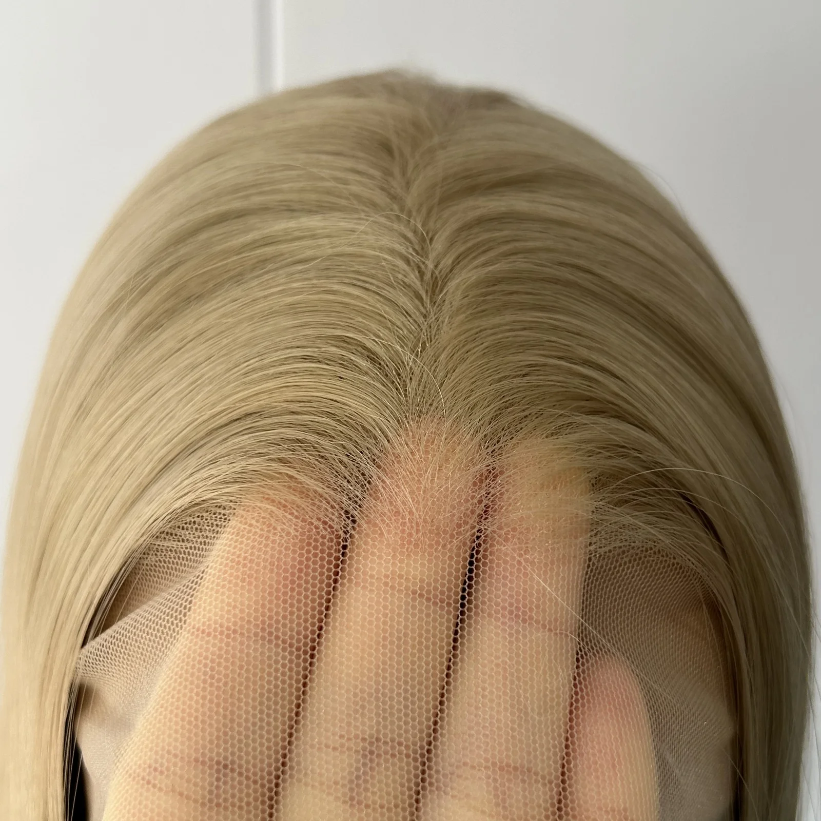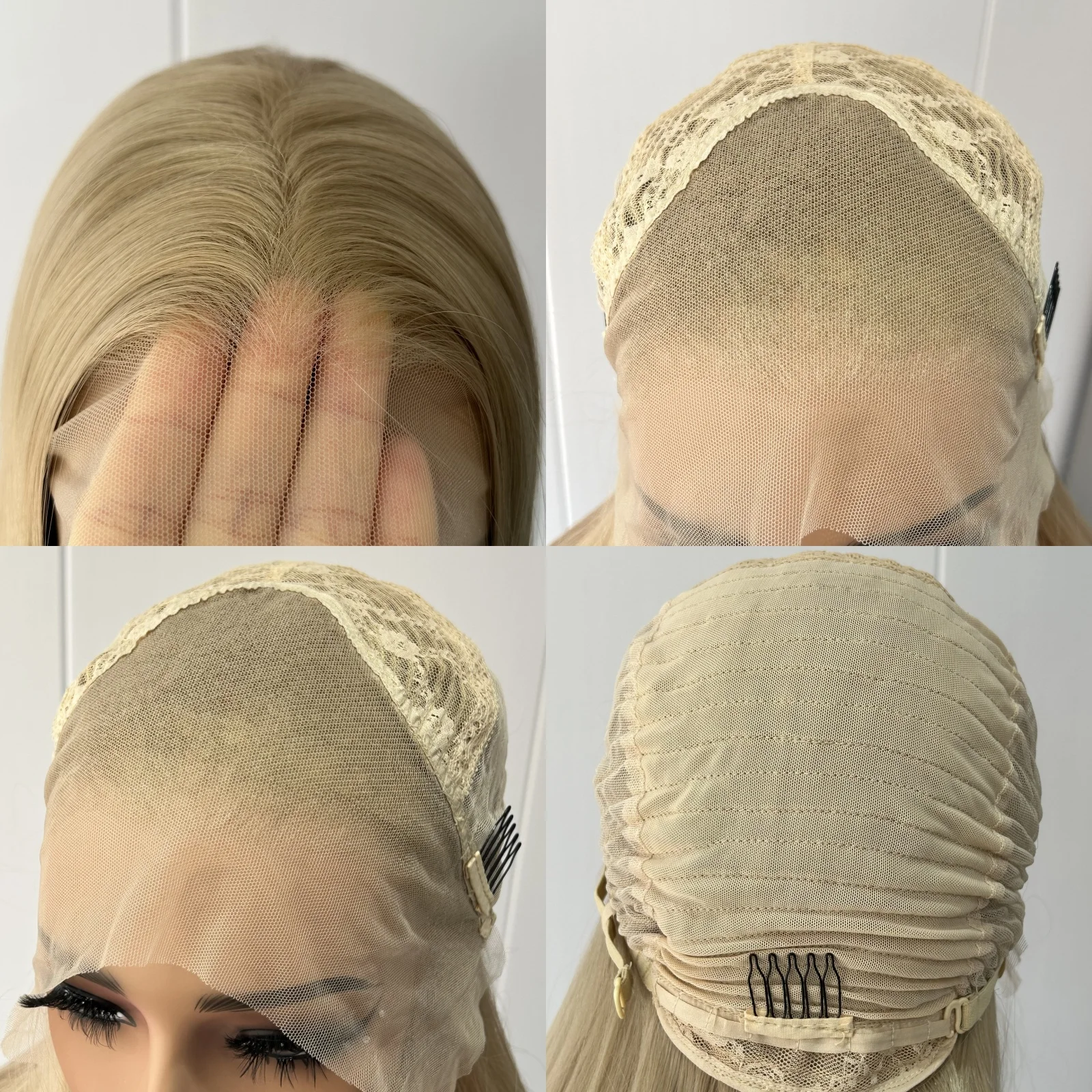 Ash Blonde Long Silky Straight Synthetic Lace Front Wig Free Part Dirty Blonde Colored Heat Resistant Fiber Wigs for Women Daily