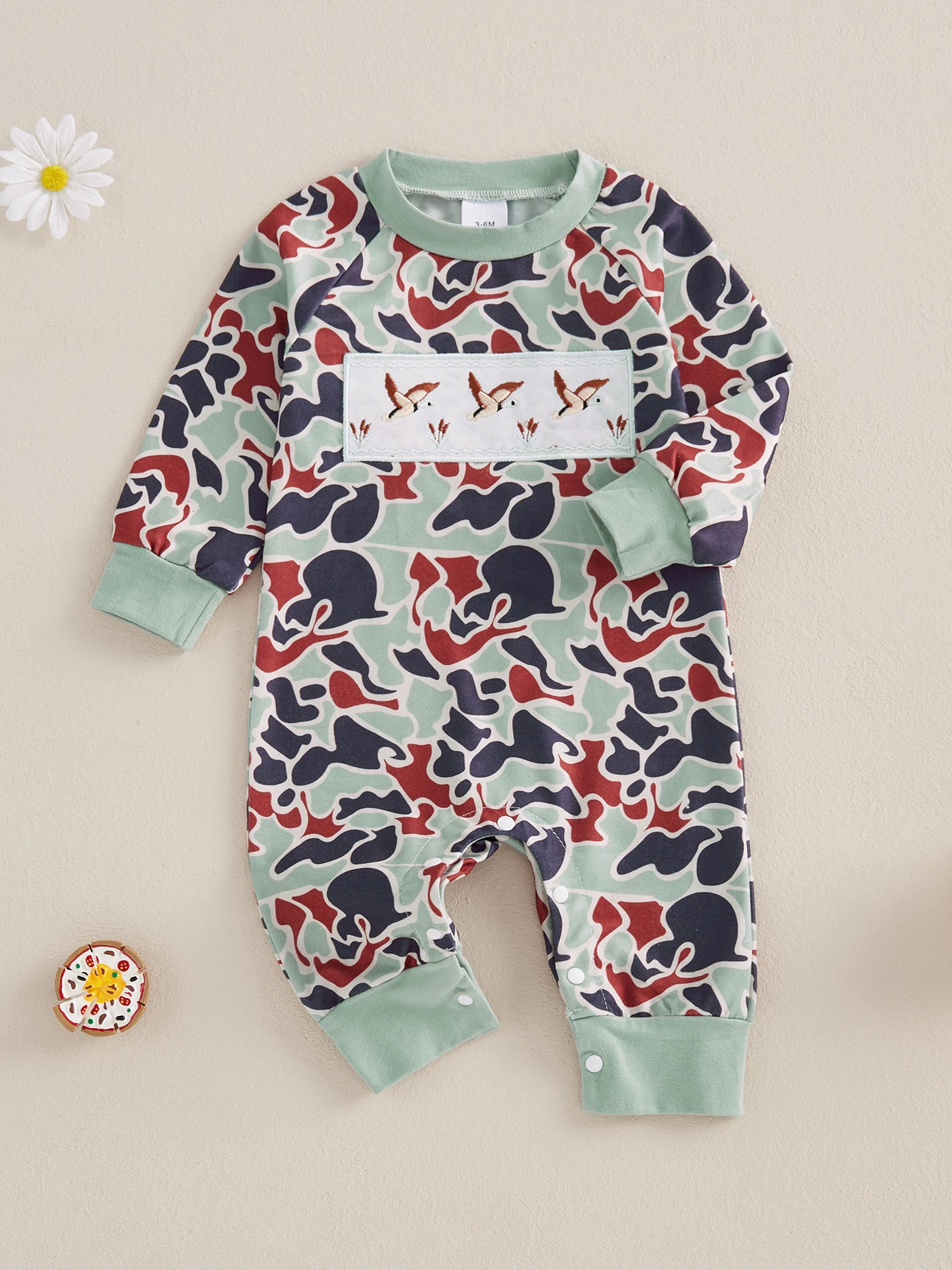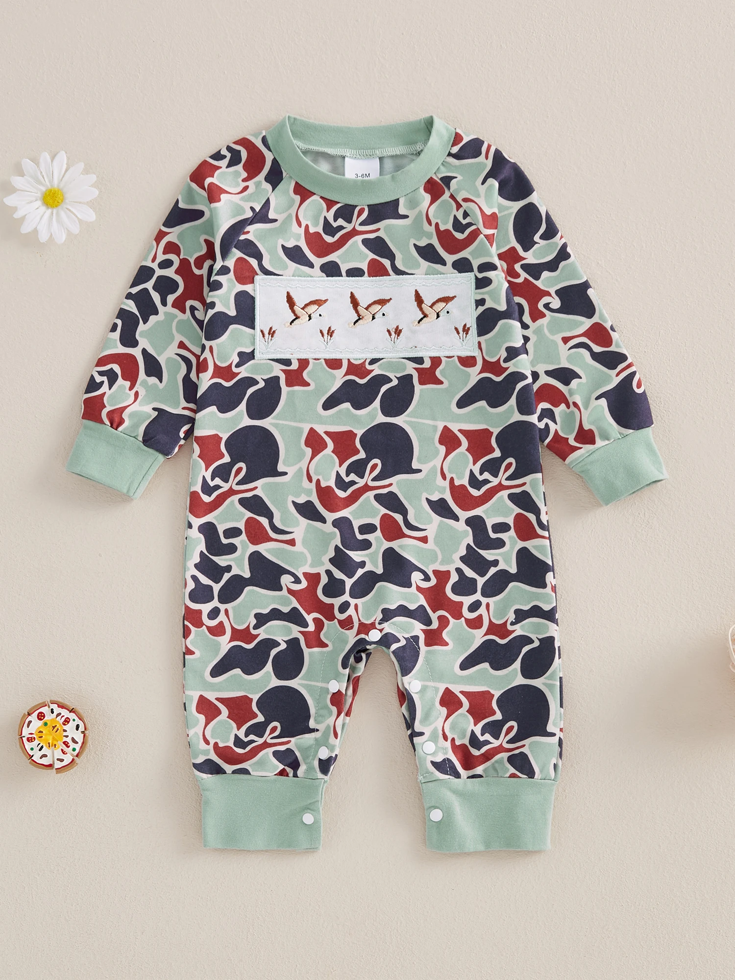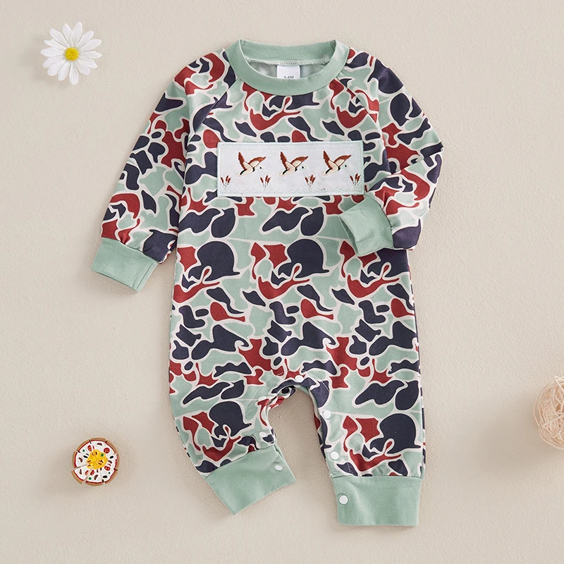 Baby Boys Jumpsuit, Long Sleeve Camouflage Embroidery Duck Casual Autumn Newborn Romper Clothes