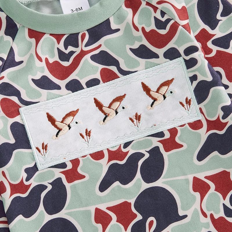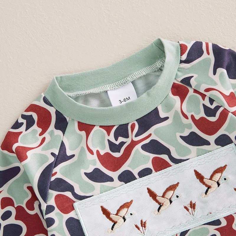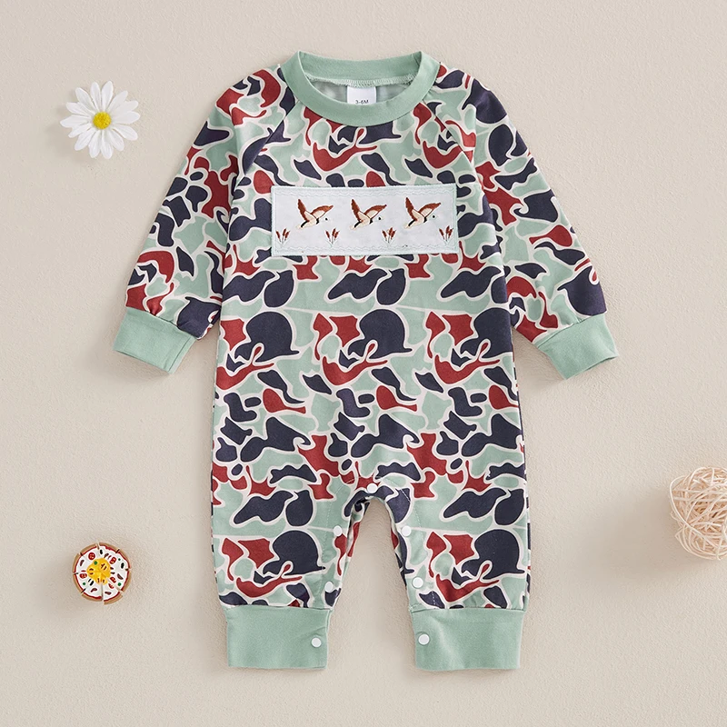 Baby Boys Jumpsuit Long Sleeve Camouflage Embroidery Duck Casual Autumn Newborn Romper Clothes