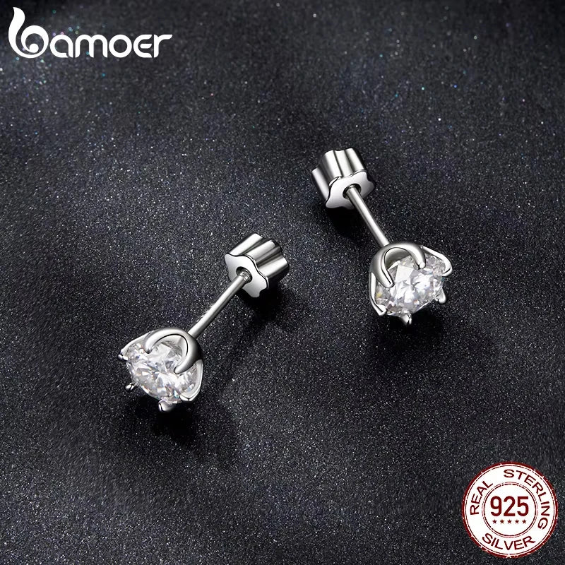 BAMOER White Gold Plated Moissanite Earrings for Women, 925 Sterling Silver Sparkling Moissanite Studs Huggies Christmas Gift