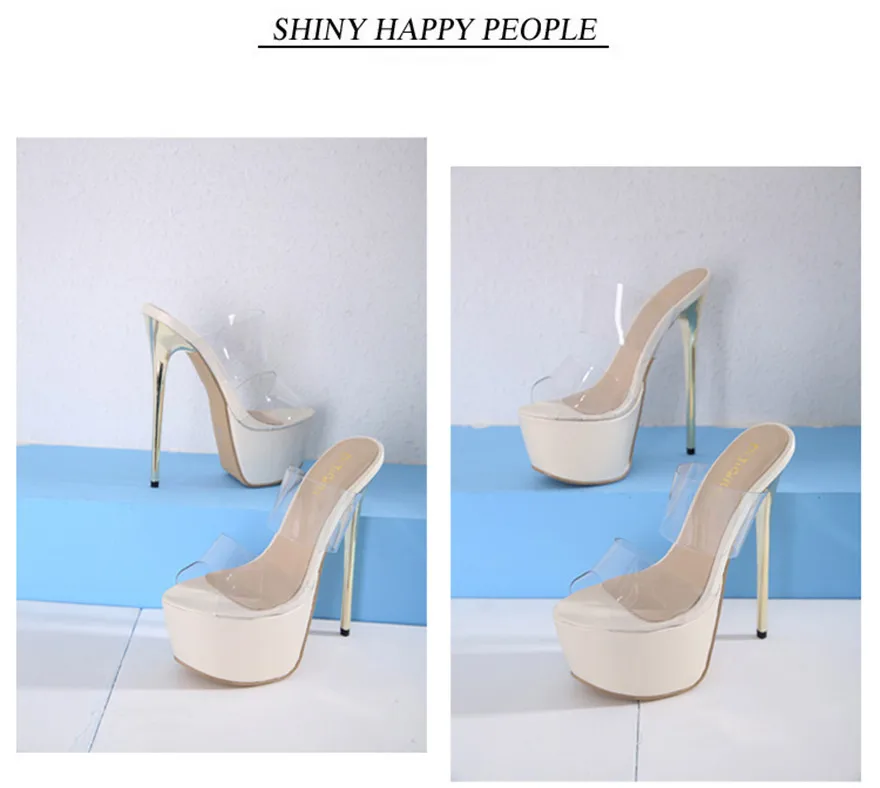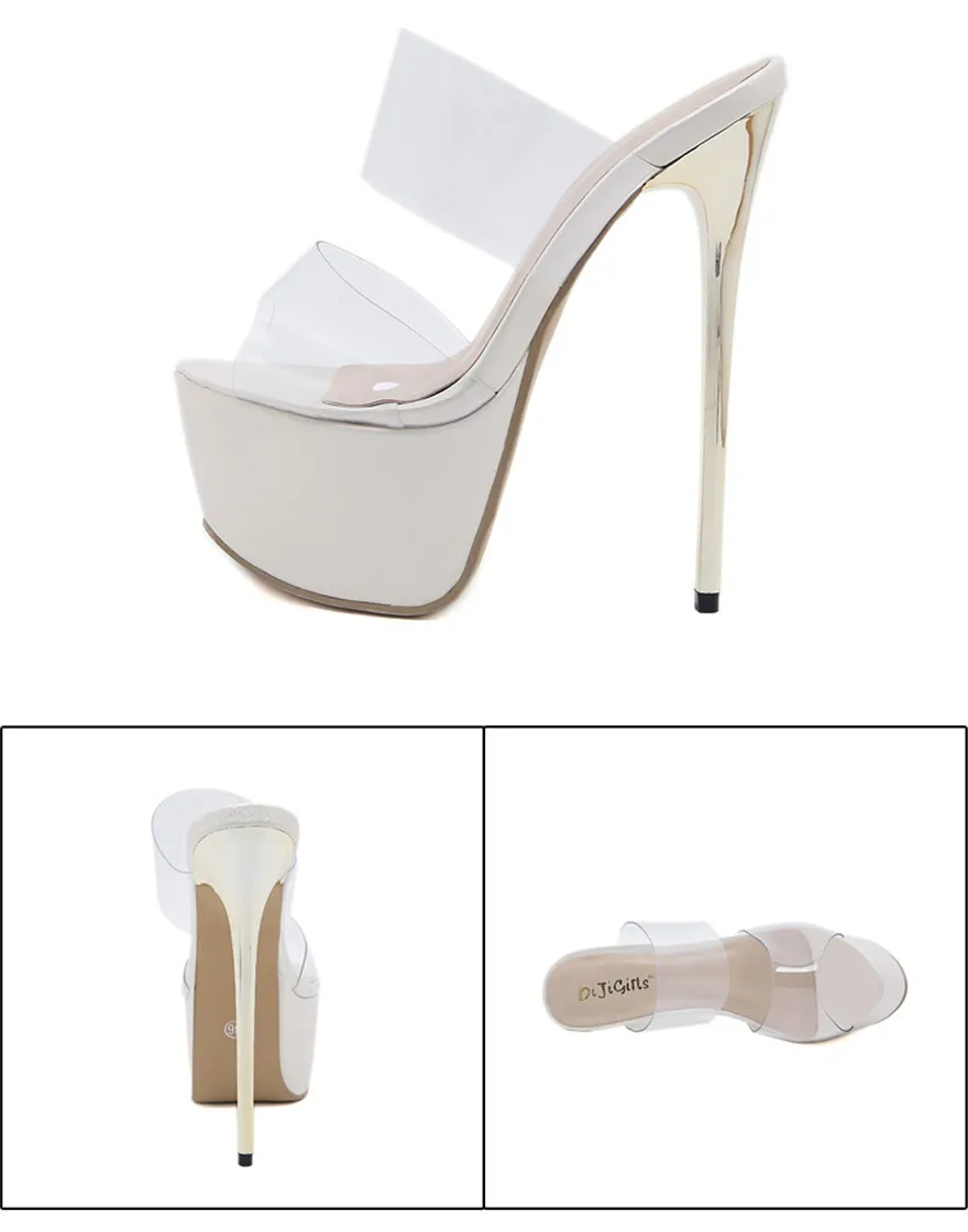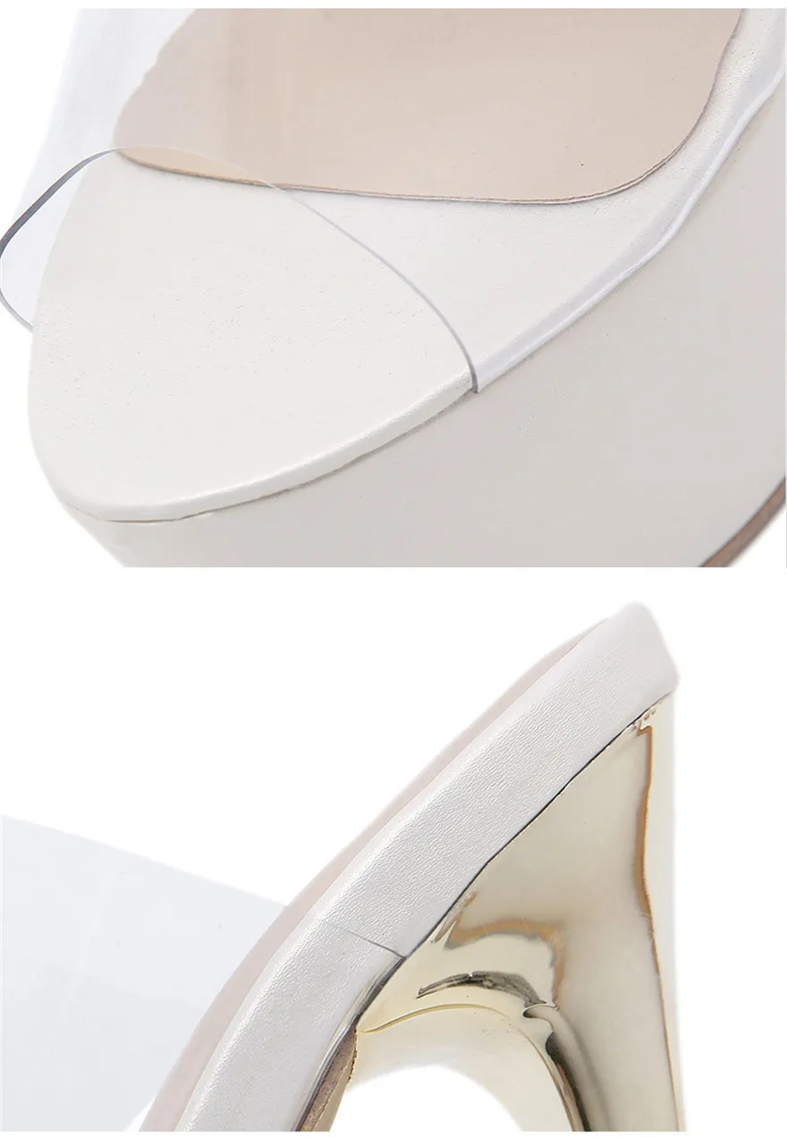 Big Size 35-42 Women Super High Heels 16cm Slippers Summer Sexy Platform Transparent PVC Word Sandals Woman Peep Toe Party Shoes