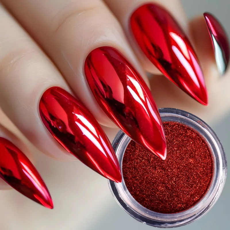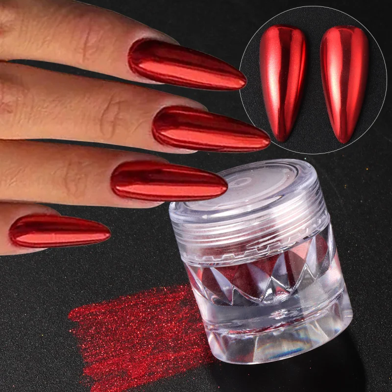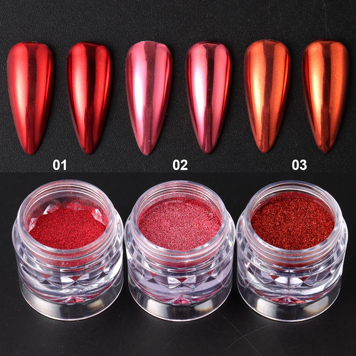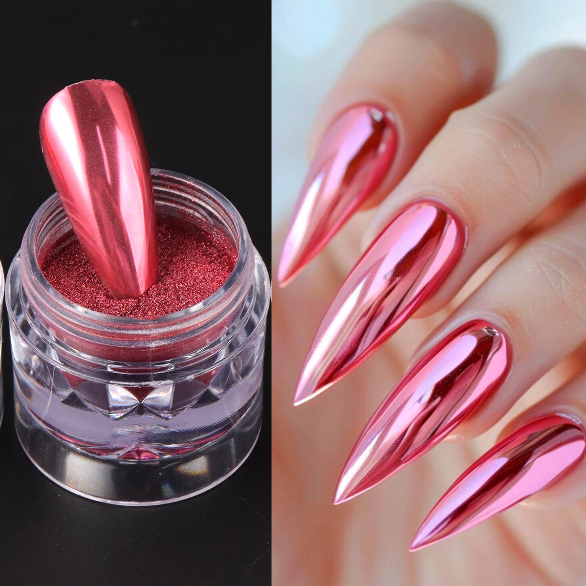 Chrome Red Pink Nail Glitter Powder Magic Mirror Metallic Rubbing Pigment Flakes Dust New Year Valentine Nail Art Decor