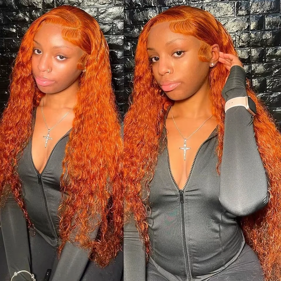 Ginger colored deep wave 13x6 hd lace frontal human hair wig for women choice 30 inch lace front brazilian curly wigs on sale