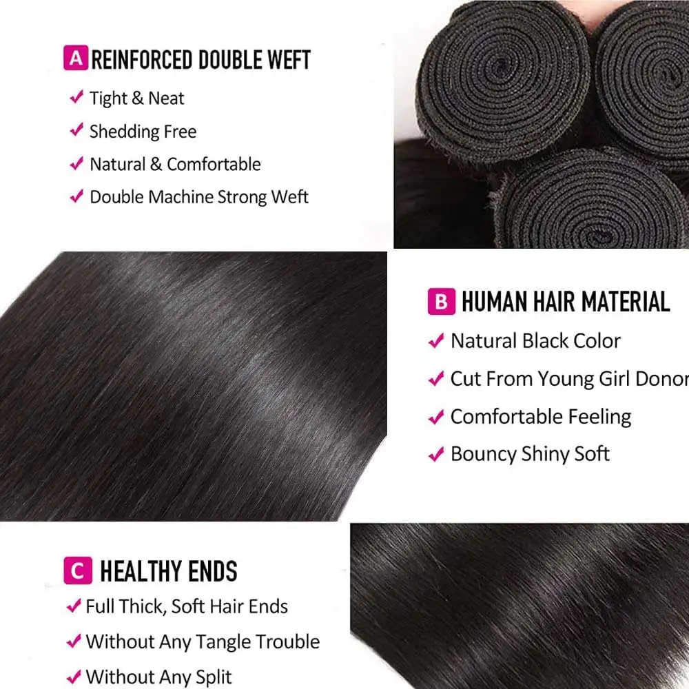 Human Hair 36 40 Inch Bone Straight Raw Hair Human Hair Bundles Extensions 1 3 4 Bundle Black Brazilian Remy Weave Bundles
