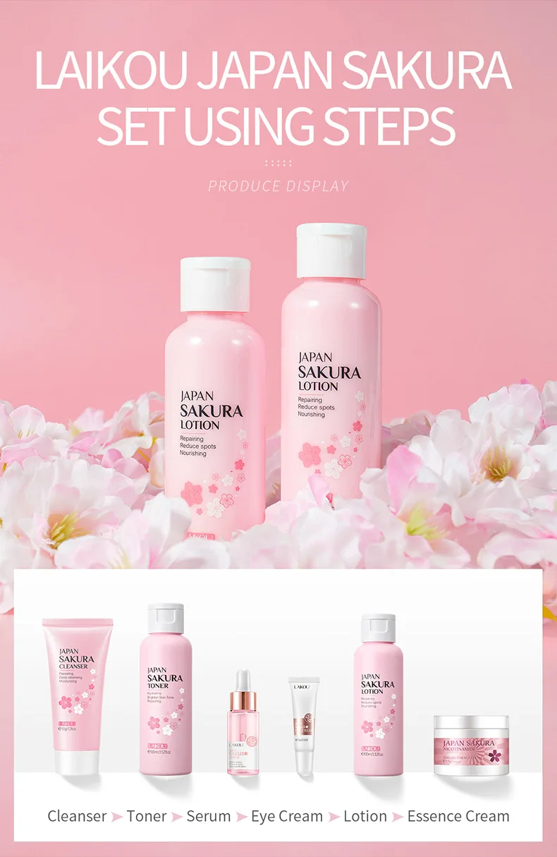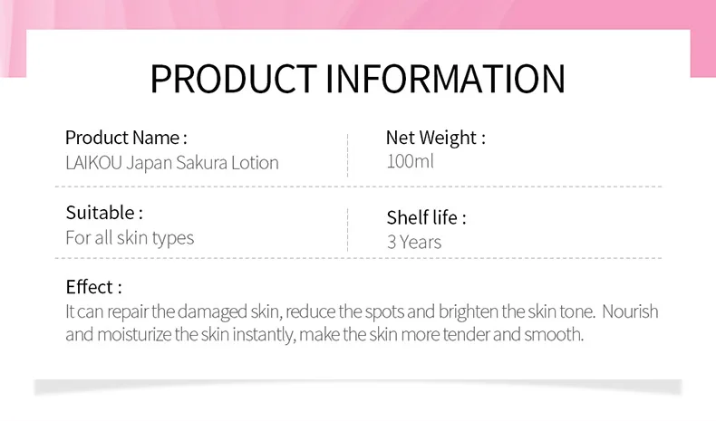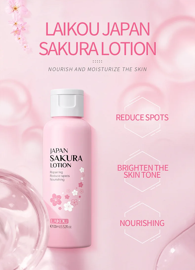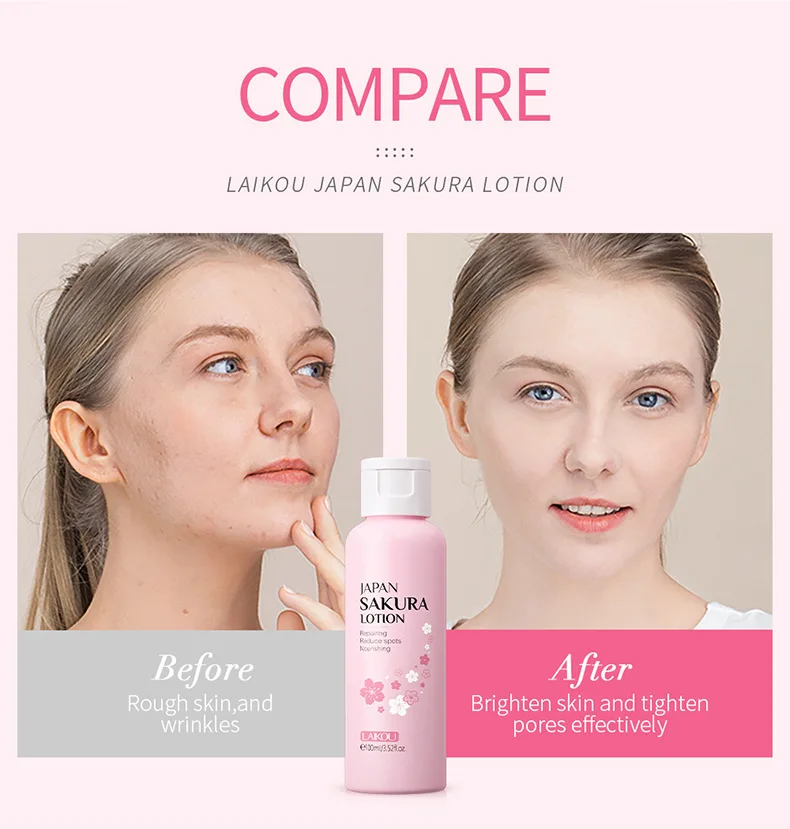 LAIKOU Sakura Face Lotion Moisturizing Essence Shrink Pores Repairing Improve Skin Elasticity 100ML