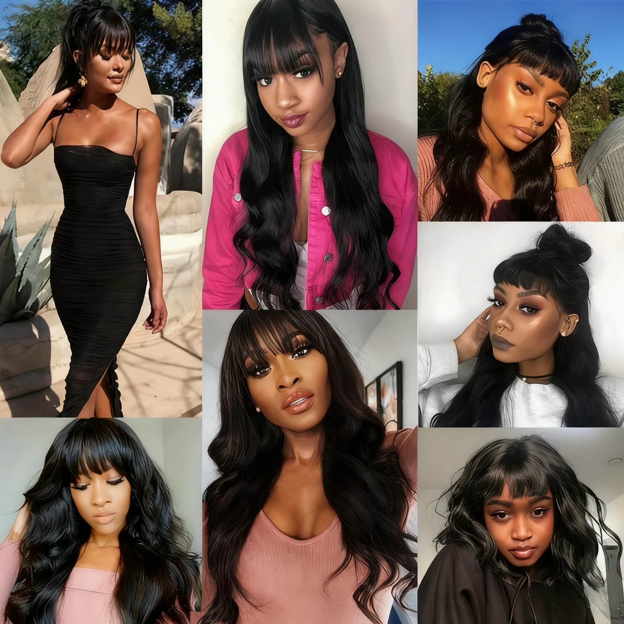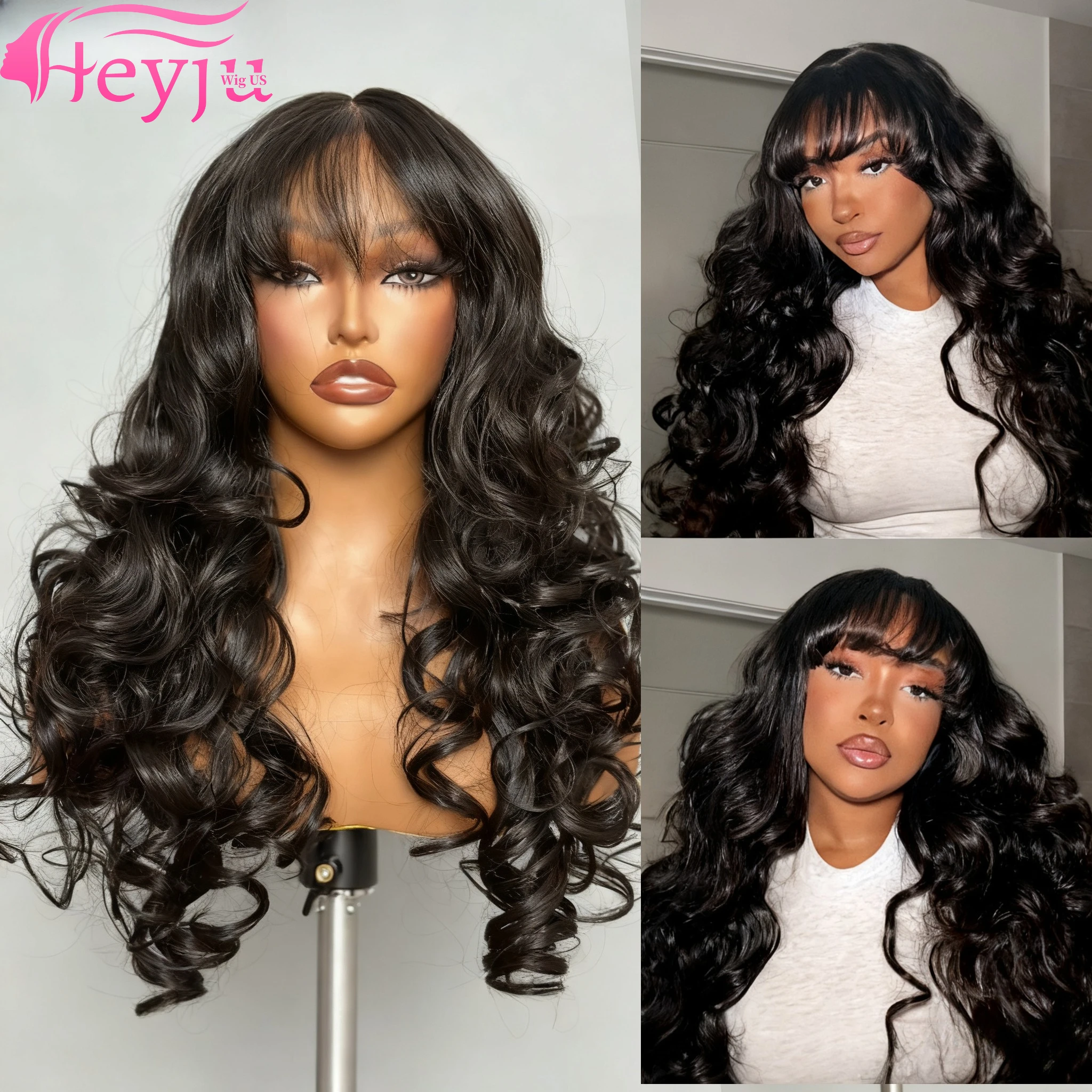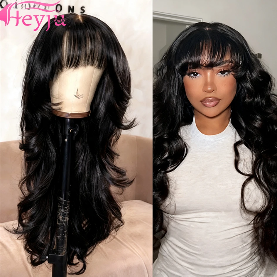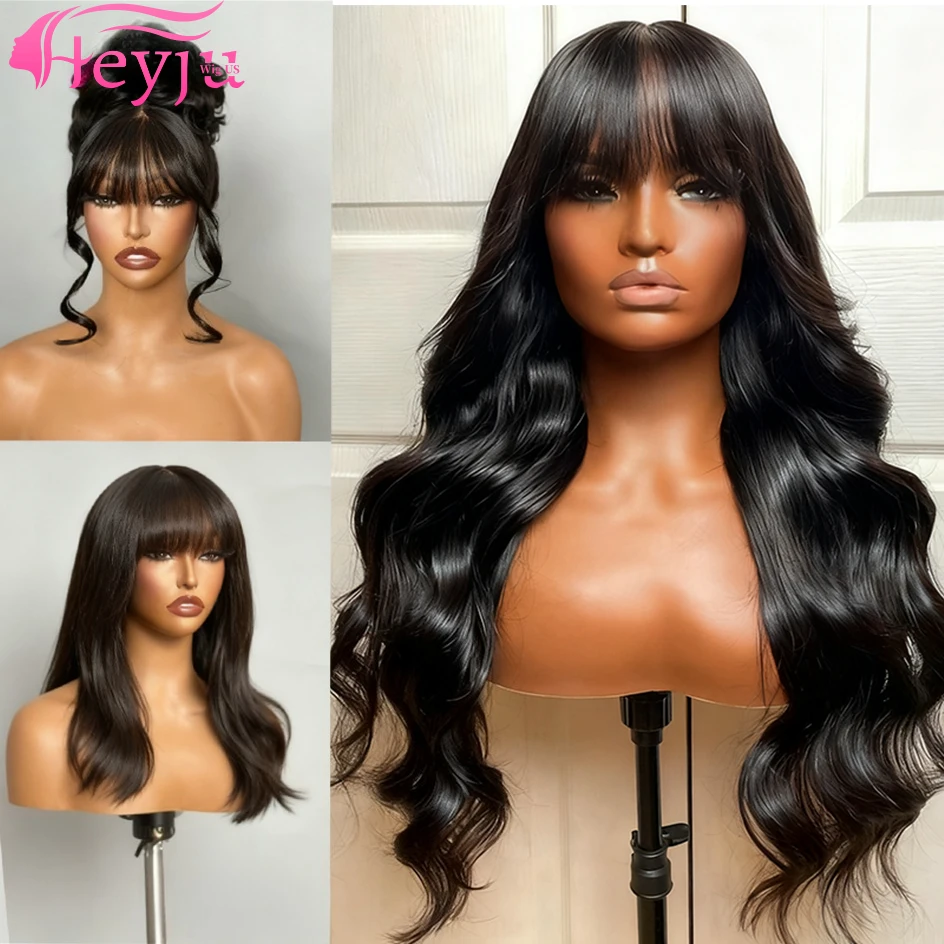 Middle Part Body Wave Human Hair Wig With Bangs for Black Women 3x1 Lace Wigs 230 Density Brazilian 30 36 Inch Wigs for Women