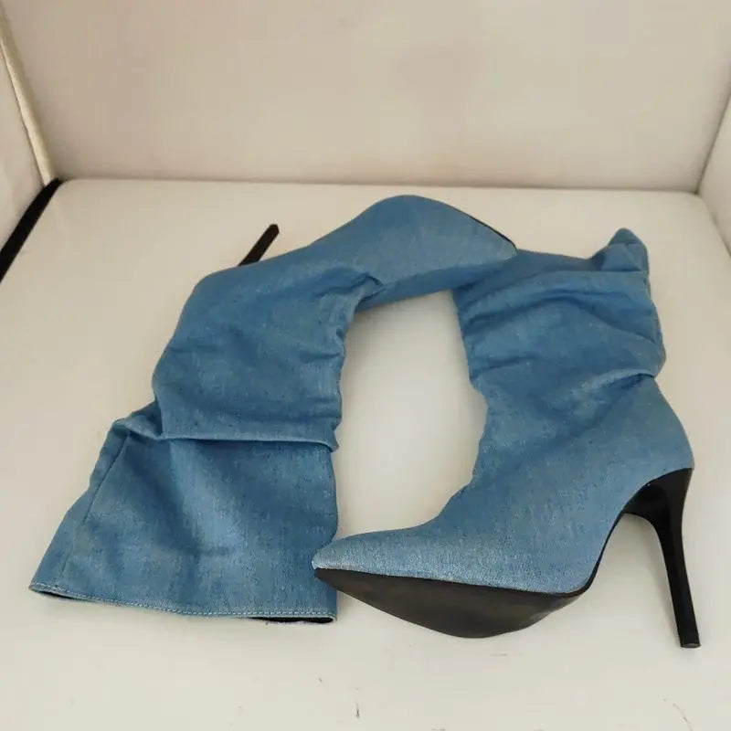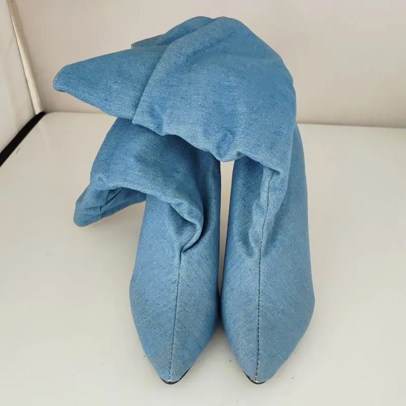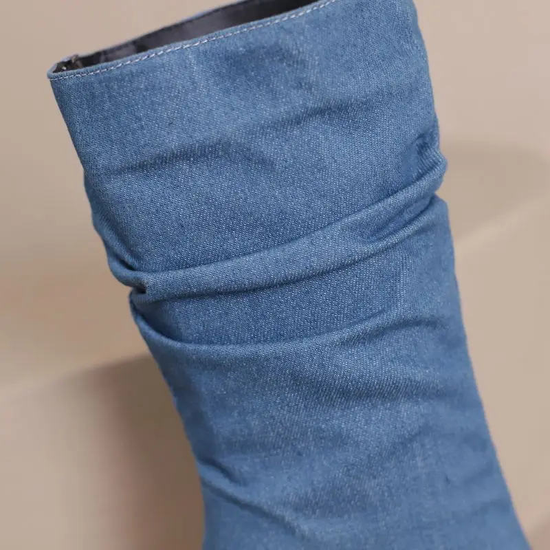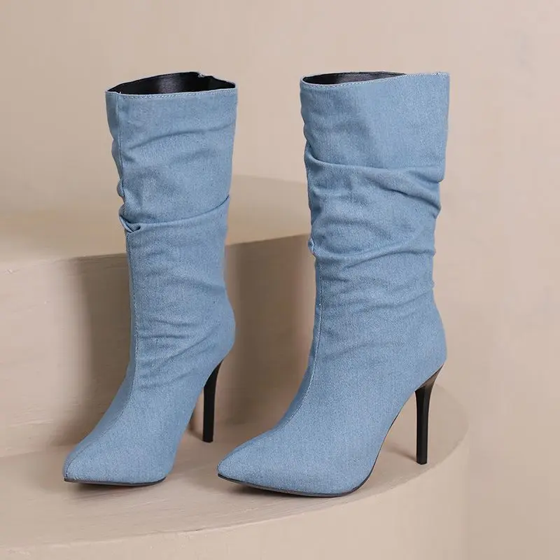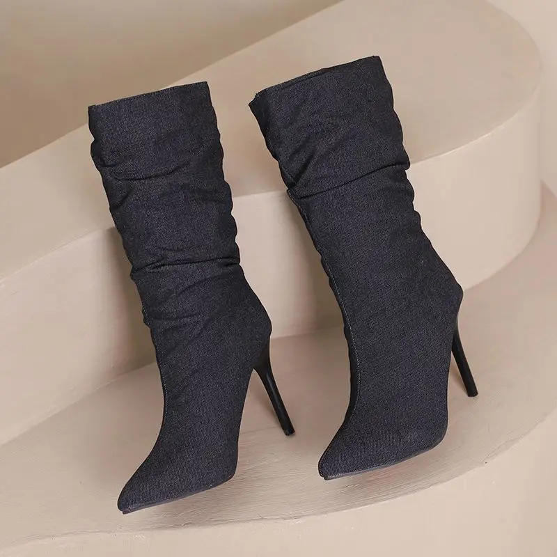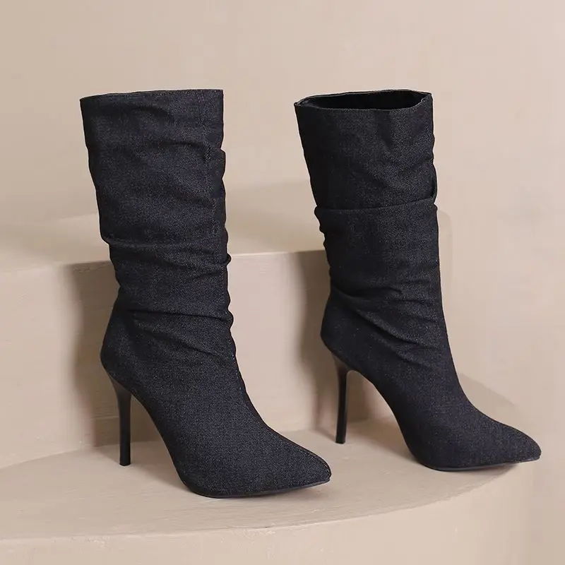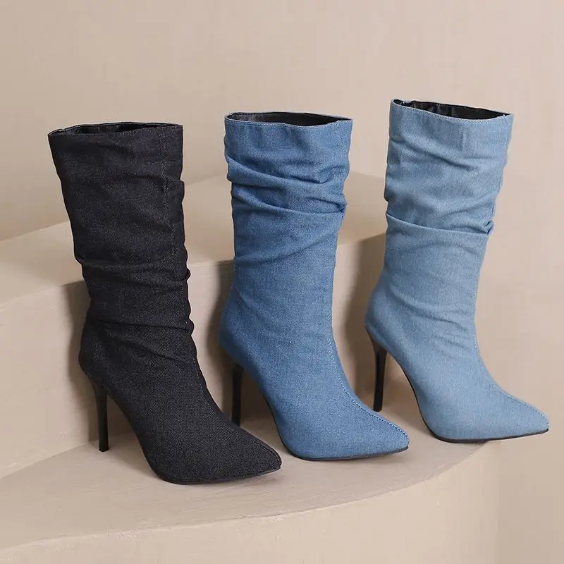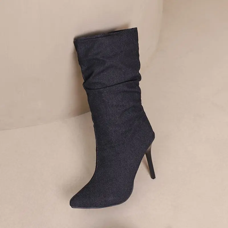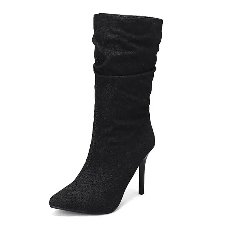 SIMLOVEYO Brand Women Mid Calf Boots Pointed Toe Stiletto 10CM Slip On Sexy Dating Female Booty 43 42 44 45 46 47 48 Black Blue