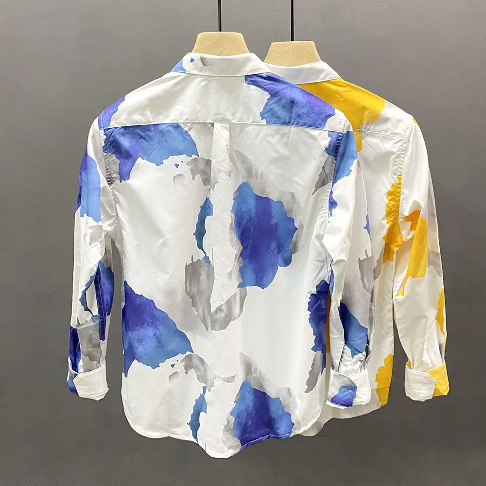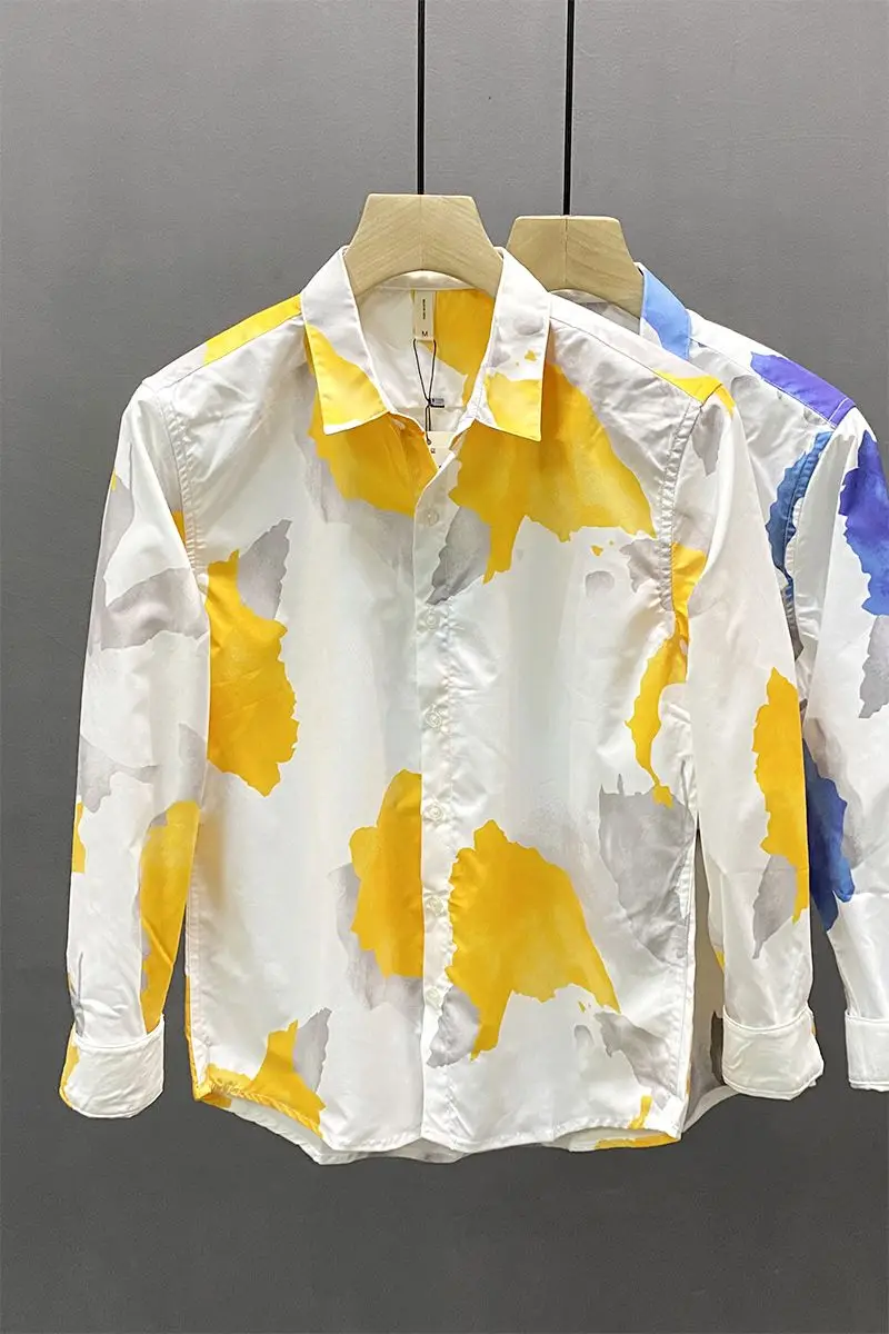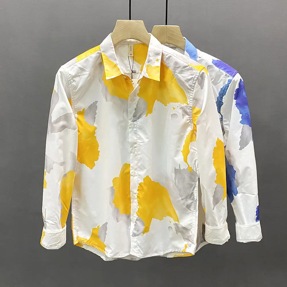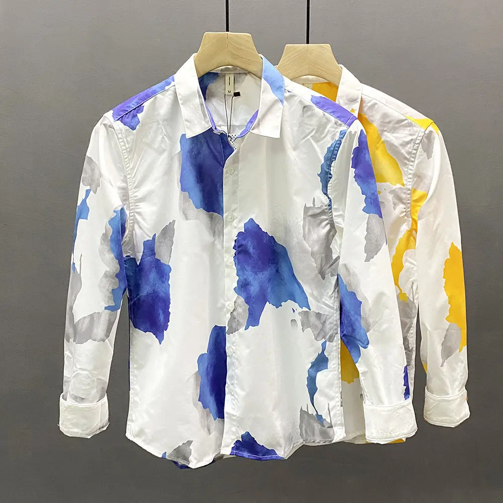 Spring Autumn New Turn-down Collar Fashion Long Sleeve Shirt Man Printing Button Patchwork Shirt Korean Style Pure Cotton Tops