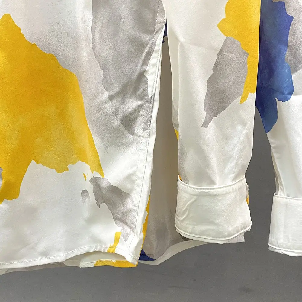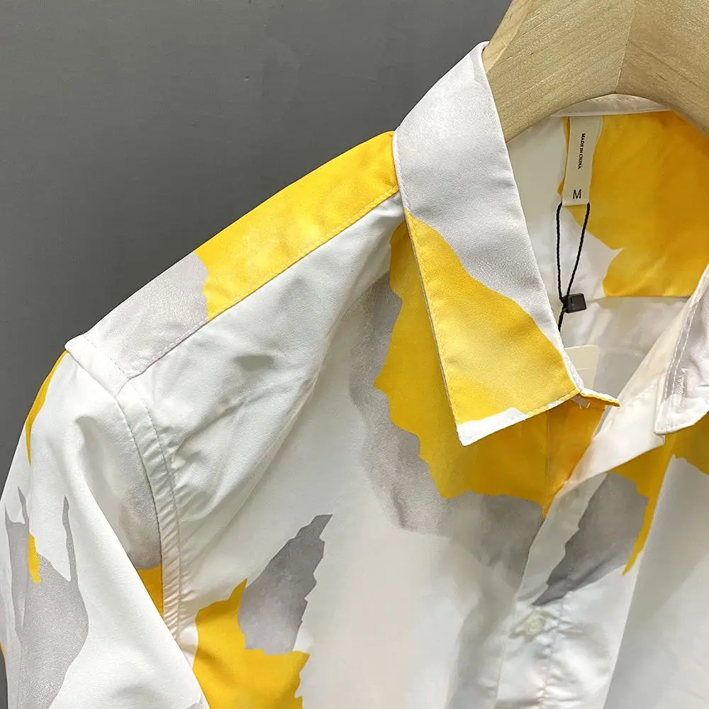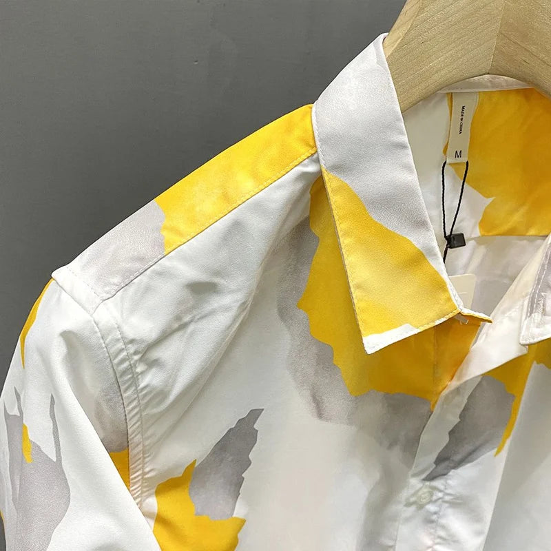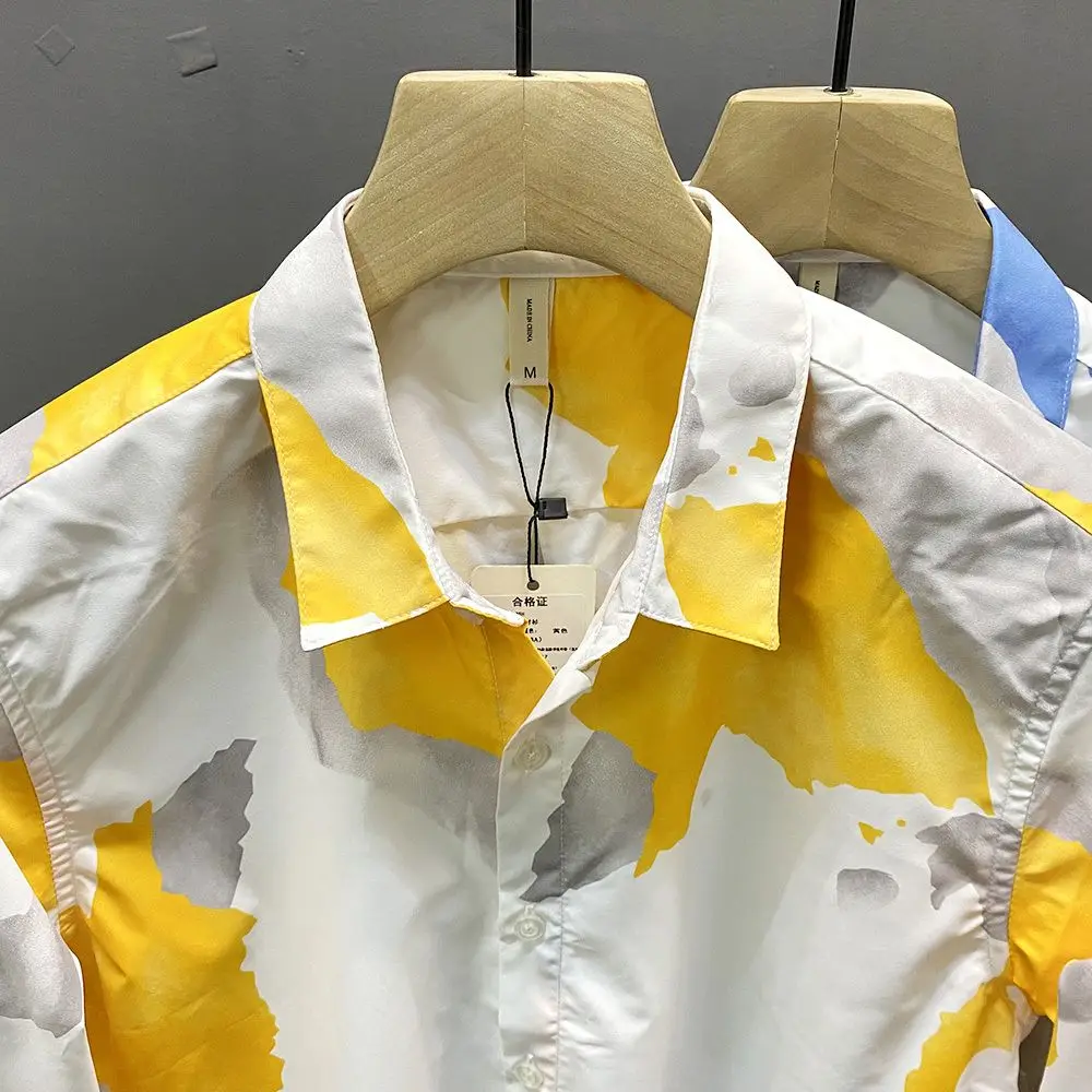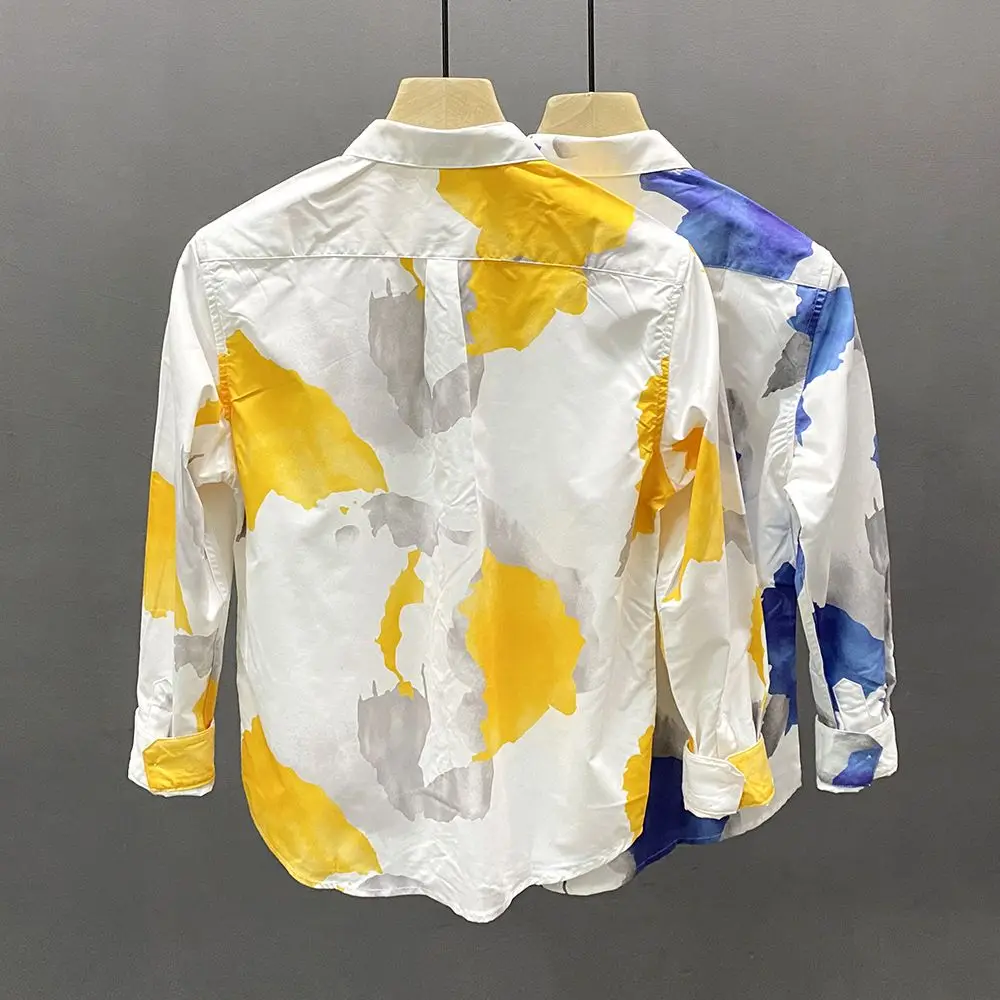 Spring Autumn New Turn-down Collar Fashion Long Sleeve Shirt Man Printing Button Patchwork Shirt Korean Style Pure Cotton Tops