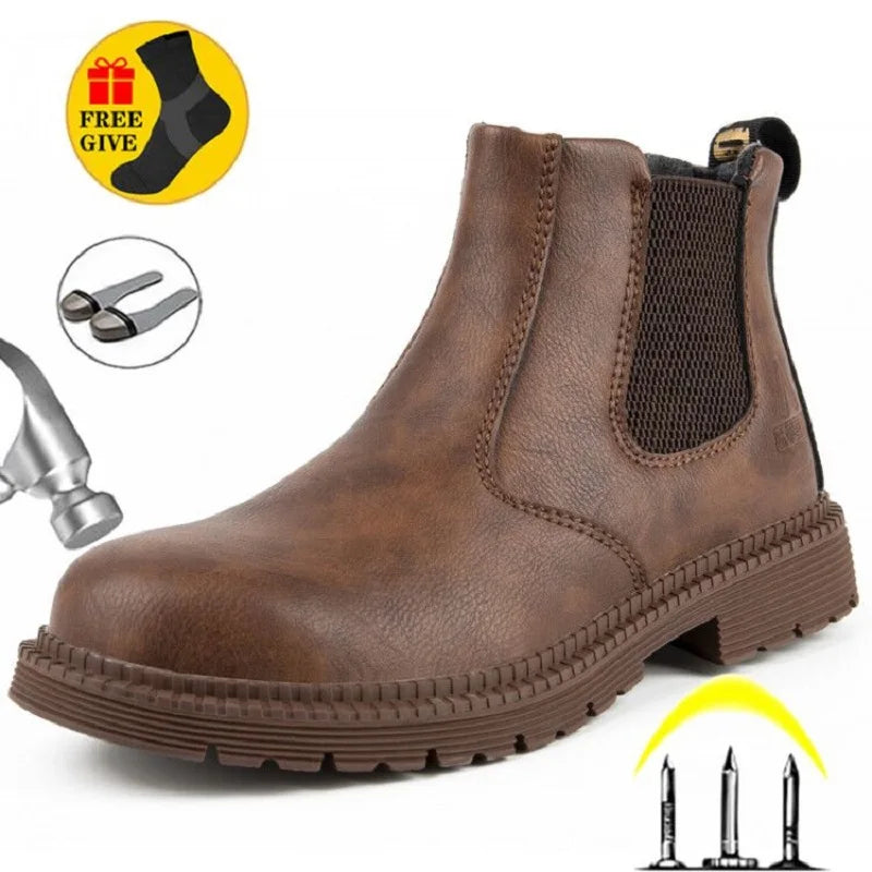 Winter Boots Leather Shoes Men Work Safety Shoes Men Indestructible Work Boots Men Safety Boots Steel Toe Shoes Chelsea Boots