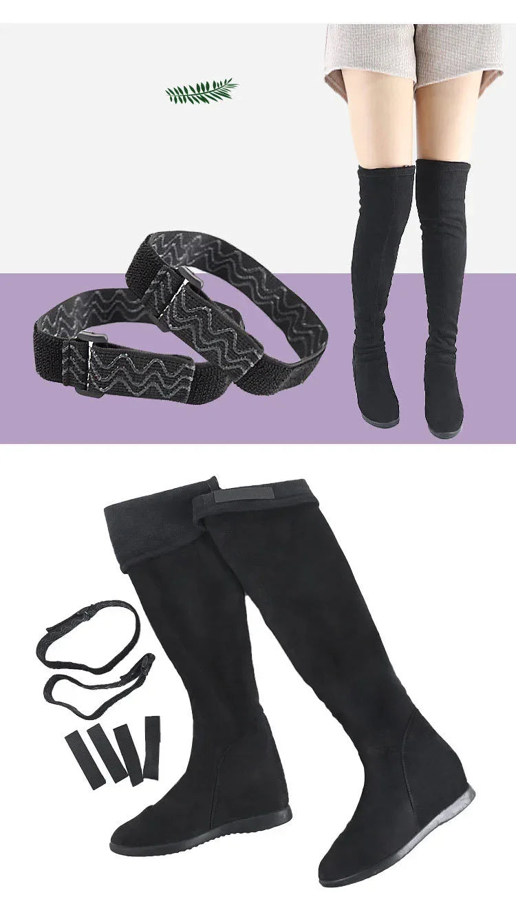 Women's Adjustable Anti-Slip Elastic Shoelaces Boot Straps with Adhesive Tape Shoe Laces Lock for Holding Loose Boots Accessory